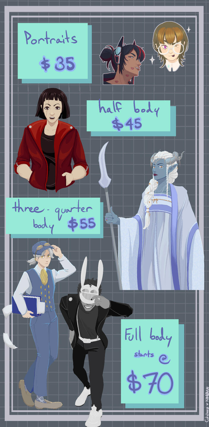 Nudes and lewds accepted, but not taking actual p*rn commissions, or overly detailed gore, at this time. Hard no’s will be updated as I think of them, but at this point don’t be afraid to ask for things, and I’ll let you know if I’m cool with it.